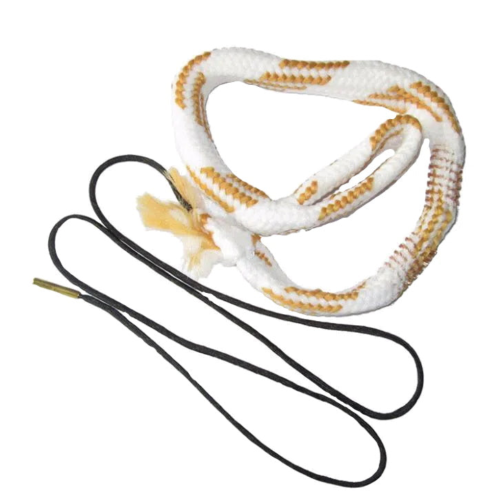 Scrubs and cleans in a single step. First, apply Gun Cleaner to the front of the cord, drop the cord into the bore and pull through one or two times. Then apply Ultra Gun Oil to the end and pull through one more time. This last step applies a thin film of oil down the barrel to protect the finish. The built in, bench-quality phosphor bronze brush and braided floss scrub, clean and oil the bore in just minutes. Washable and reusable; lightweight design wraps up neatly for easy storage and carry.- The Bore Viper 16 Gauge may be tight fitting when new. If it is difficult to pull through bore, it may be easier to step on the brass "sniglet" end of the pull cord with your foot while pulling up on the firearm.
