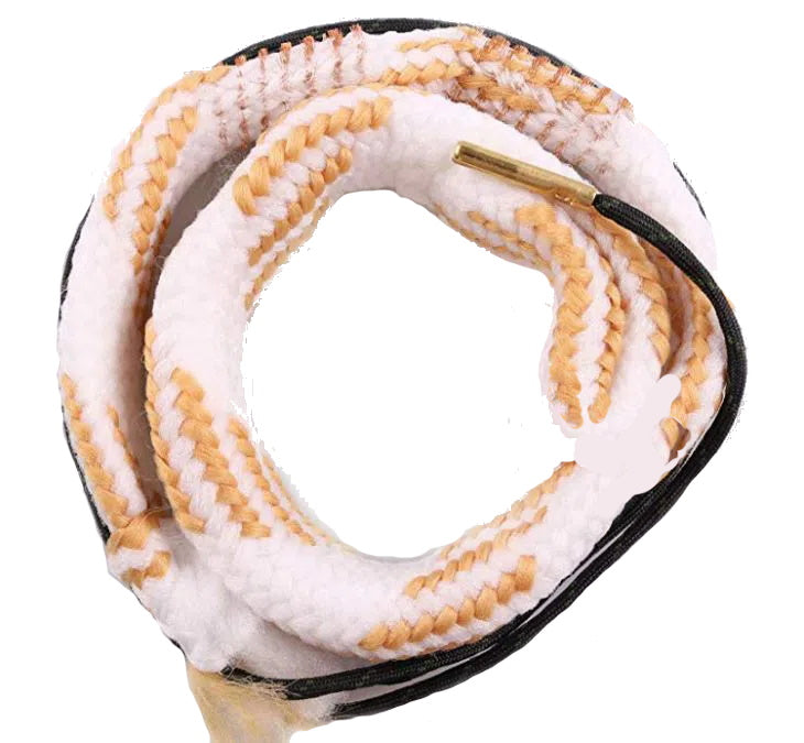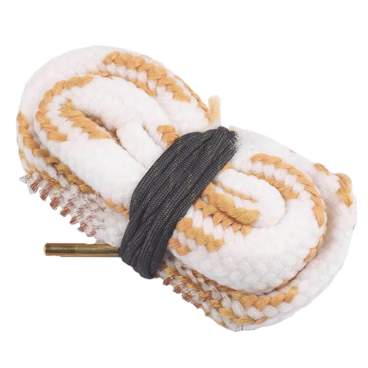 Scrubs and cleans in a single step. First, apply Gun Cleaner to the front of the cord, drop the cord into the bore and pull through one or two times. Then apply Ultra Gun Oil to the end and pull through one more time. This last step applies a thin film of oil down the barrel to protect the finish. The built in, bench-quality phosphor bronze brush and braided floss scrub, clean and oil the bore in just minutes. Washable and reusable; lightweight design wraps up neatly for easy storage and carry.