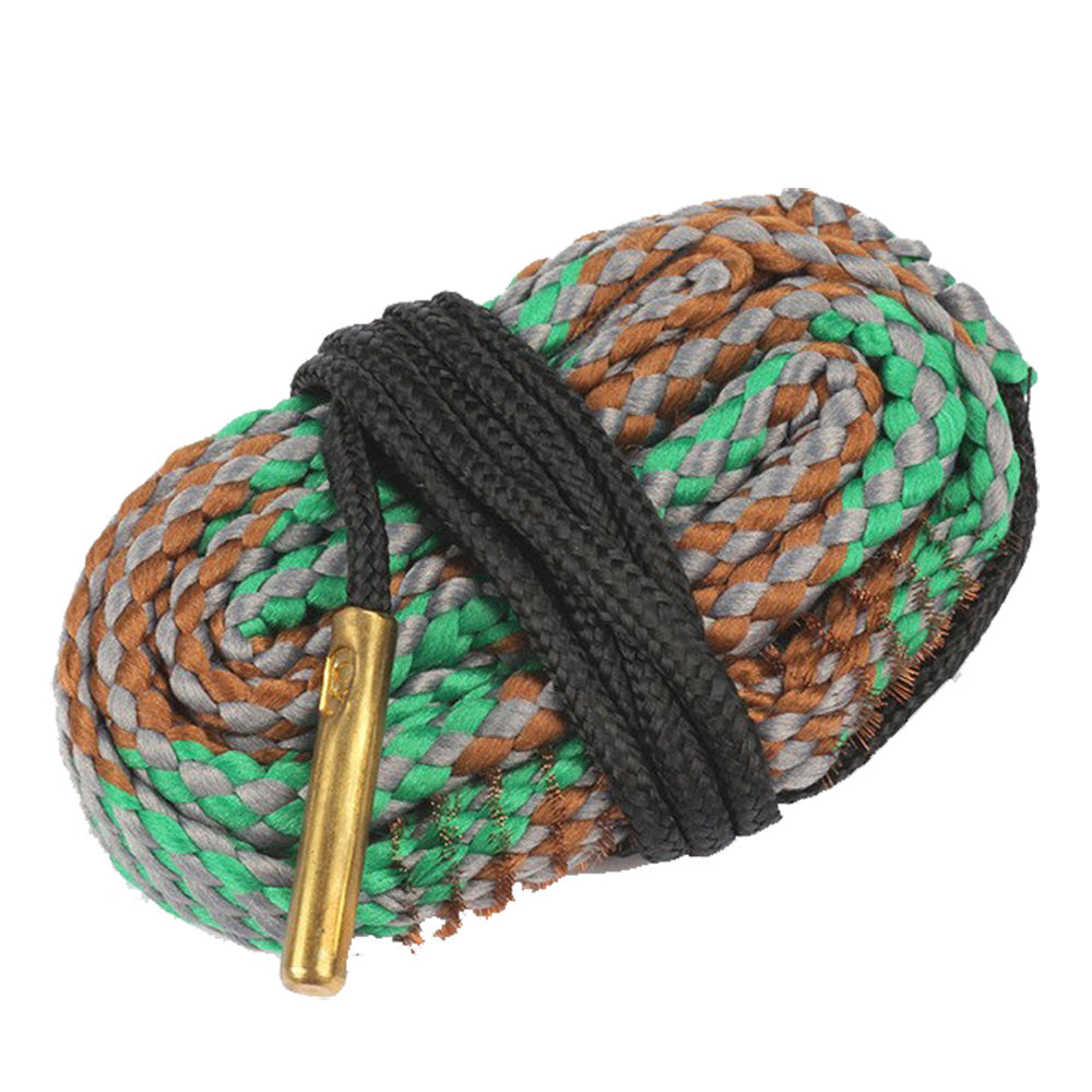 The .40 Caliber Bore Viper from Fett Affen is a revolutionary product that cleans a bore more quickly than with the traditional method. With a single pull of the BoreViper, you will have a barrel that is clean and ready for action. The incorporated bronze brush efficiently loosens hard fouling and lead. The woven cotton floss that follows finishes with the final clean up. The Bore Viper has 155 times more cleaning area than a standard patch, making for a cleaner bore in less time. Also, it is completely washable so you can reuse it over and over. The brass-weight on the end of the cord is imprinted with the bore size and slips easily down the barrel. It has no exposed metal to damage the rifling or crown of your barrel. The Bore Viper is an excellent product to use at home, at the range or out hunting.