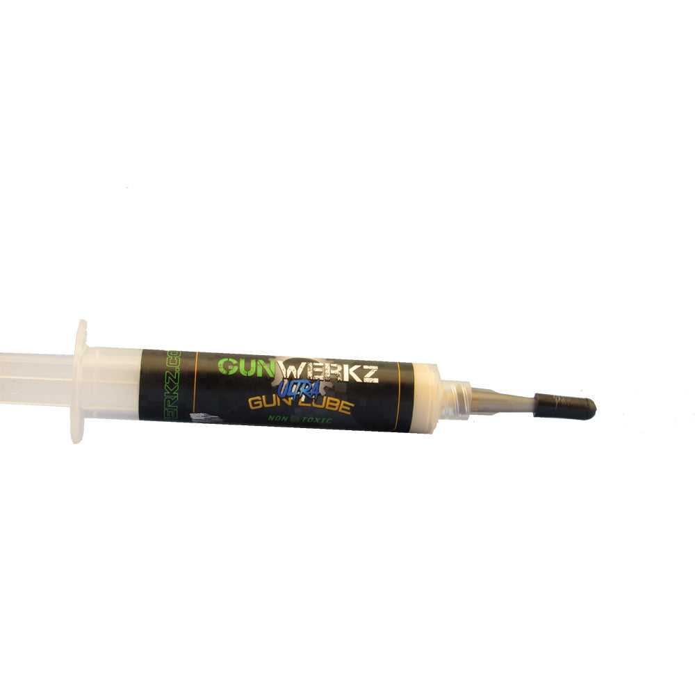 Gun-Werkz offers a general purpose grease that is formulated to work on all of your firearms and give you the protection you need. Ultra Gun Lube is a full synthetic grease that doesn't attract dirt and dust like the petrochemical greases do. This product is a 100% synthetic, calcium sulfonate based grease. Provides long lasting, anti-wear and extreme pressure protection.